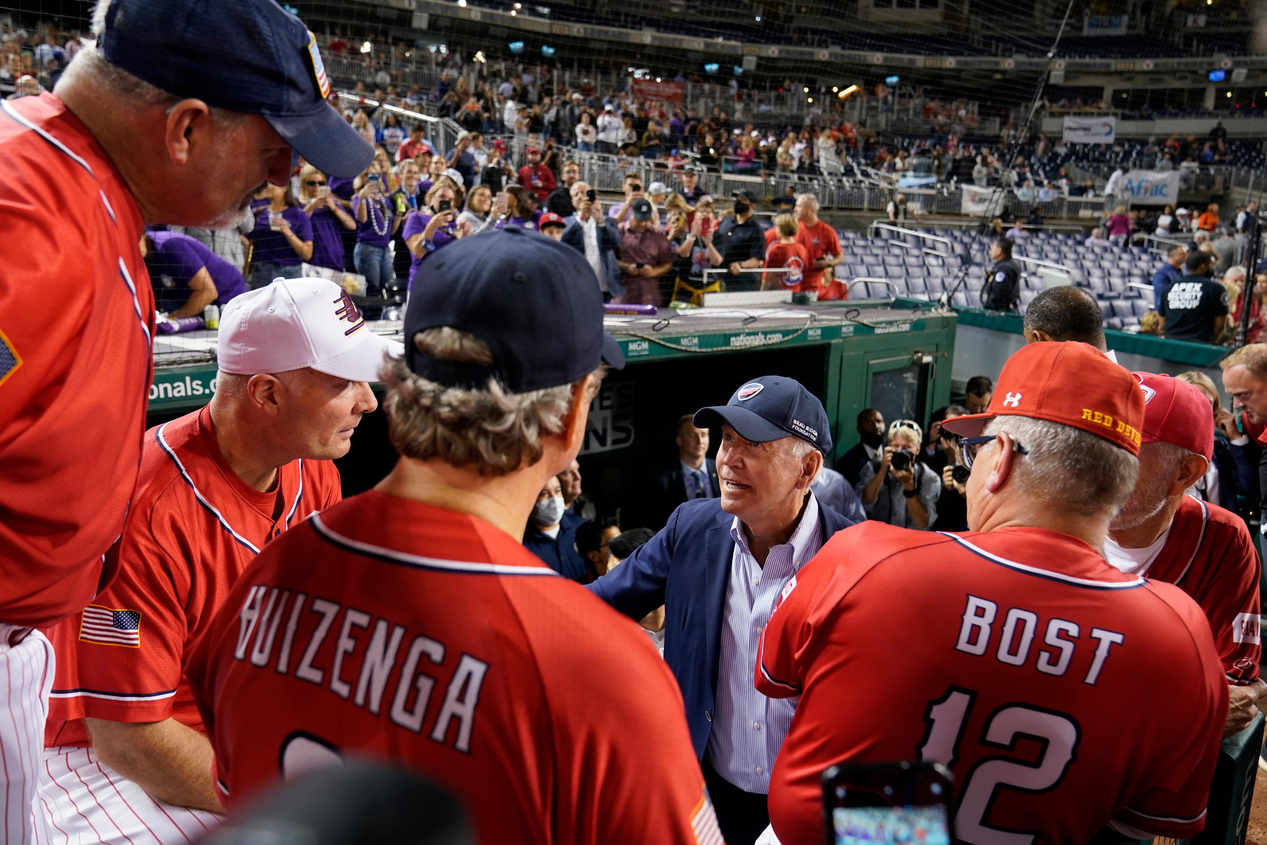 President Joe Biden visits the Republican dugout during the the Congressional baseball game at Nationals Park September 29 2021 in. 29 2021 in. Over the last century the Congressional Baseball Games popularity has contributed to its evolution into a foundation.
